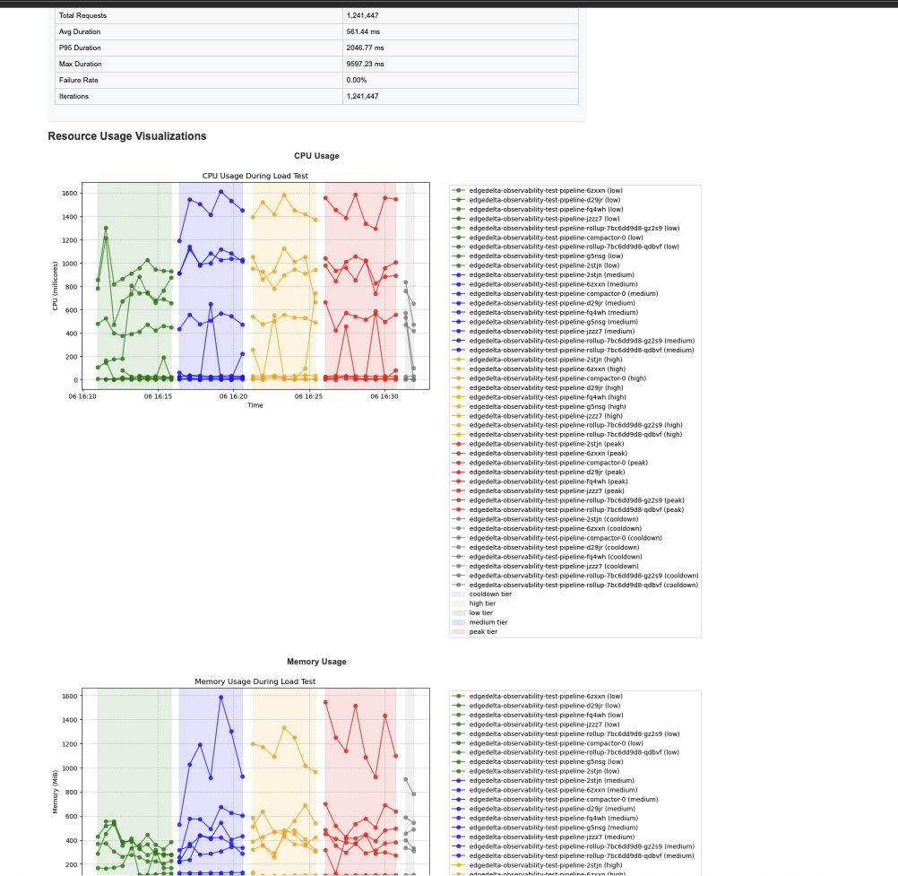 In modern cloud-native environments, understanding how applications perform under stress is critical for maintaining system reliability and delivering a consistent user experience. At Edge Delta, we build and operate large-scale distributed systems that process petabytes of observability and security data daily. Operating at this scale requires us to thoroughly test our services under various load conditions to ensure they meet performance expectations.