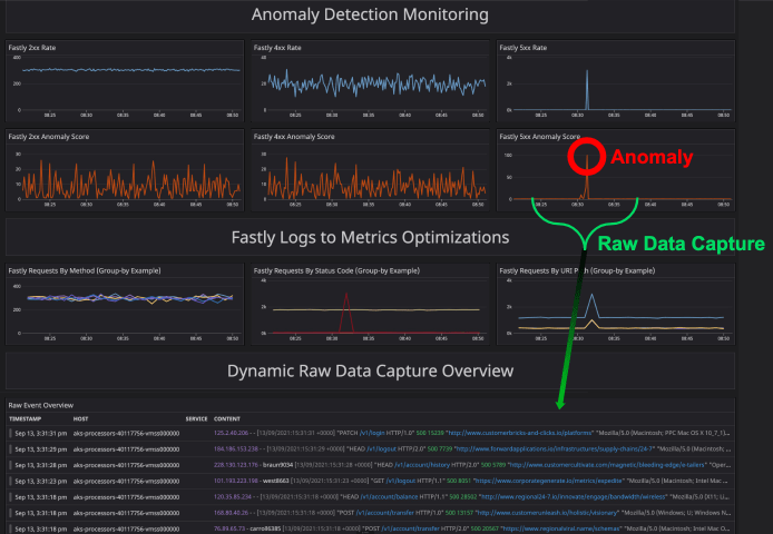 But what about the raw logs? Once an anomaly is detected, nothing is going to beat the raw logs for digging in and troubleshooting. An Edge Delta Anomaly Capture (EDAC) leverages a configurable circular buffer for dynamic raw data capture. This means when an anomaly occurs, you get raw data from before and after the occurrence.