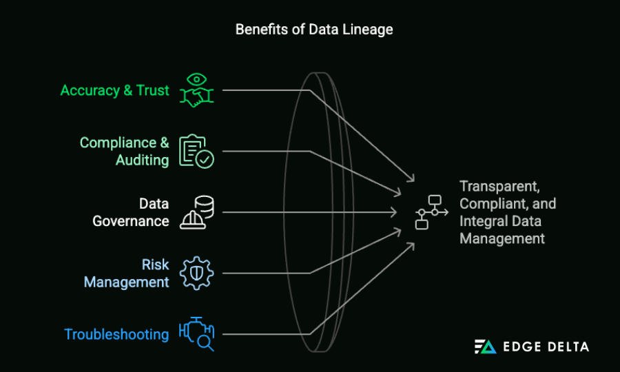 Data lineage serves as a vital audit trail, ensuring integrity and compliance. By tracking how data moves and transforms, organizations can enhance governance, uphold accuracy, and maintain consistency and security across their data operations.