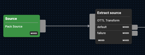 After Microsoft logs begin flowing in the Edge Delta {Source} node, they get pushed into the Extract source node. Within this OpenTelemetry Transform Language (OTTL) node, each log’s source is then extracted from the log body via a regex command to help expedite downstream analysis.