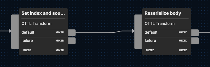 Finally, the set function assigns the concatenated result to attributes["sourcetype"]. The end result creates a consistent index and sourcetype attributes to improve log classification.