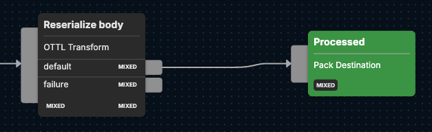 After exiting the Reserialize body node, the Microsoft logs flow to the Processed pack output. From there, logs can be shipped to any SIEM or storage destination. You can also send a full copy of all raw log data to efficient object storage like Amazon S3 for compliance or future review.