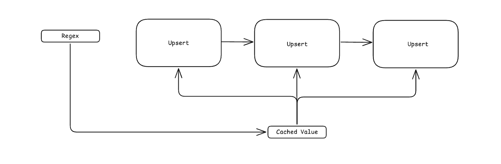 One common example is extracting log values via regular expression. Let’s imagine that you are using regex to extract a particular log field and perform multiple different upsert operations with it. Currently, you are parsing the log via regex before each individual upsert.