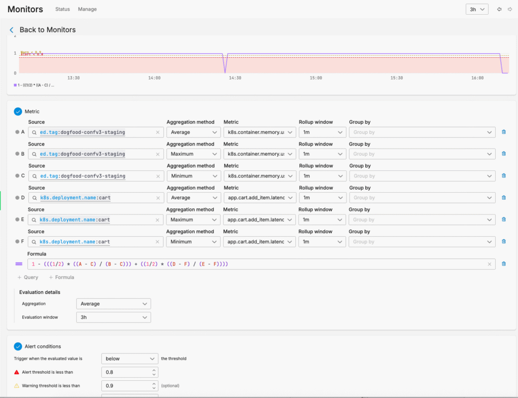 For example, instead of monitoring memory usage in isolation, you can create a monitor that correlates log-based memory metrics with trace-based latency data to trigger alerts only when both conditions indicate an issue. In this case, we want to say: