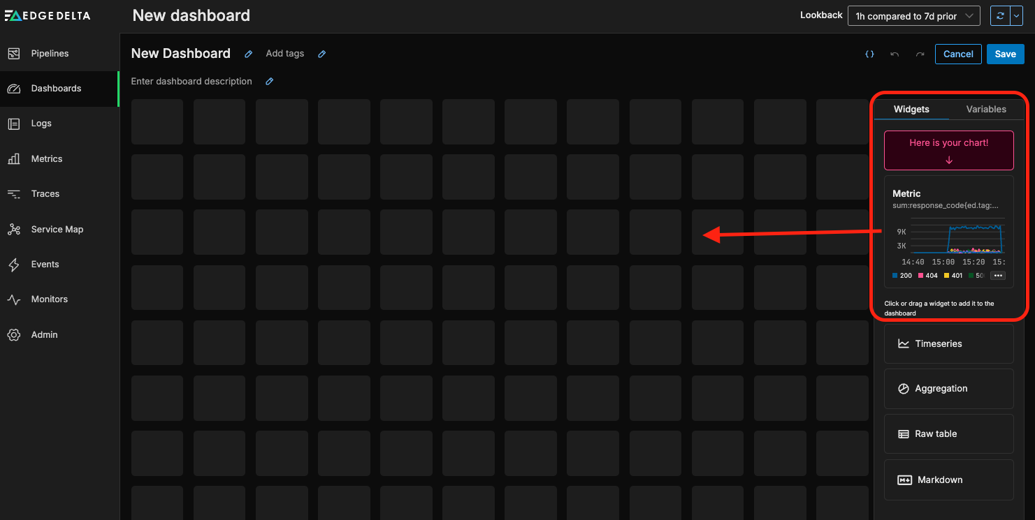 In this blog post, we’ll demonstrate how to configure pre-index log-to-metric conversion in an Edge Delta Pipeline — and how to visualize the resulting data on a customizable dashboard.