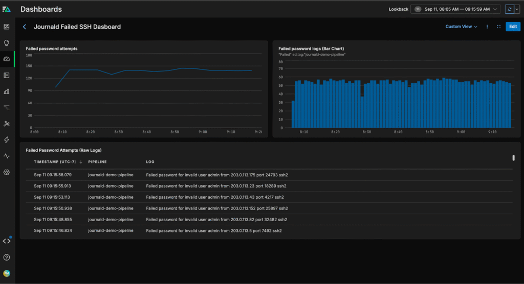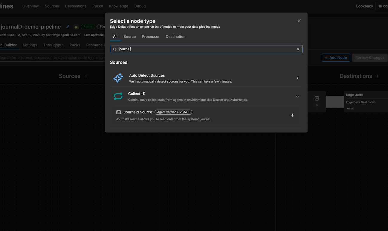 With Edge Delta’s Telemetry Pipelines, teams can efficiently collect high volumes of journald log data, optimize it pre-index, and securely deliver it to downstream platforms for streamlined analysis. In this post, we’ll walk through how to configure a Telemetry Pipeline to route optimized journald logs into the Edge Delta Observability Platform — and how to analyze them effectively once they arrive.