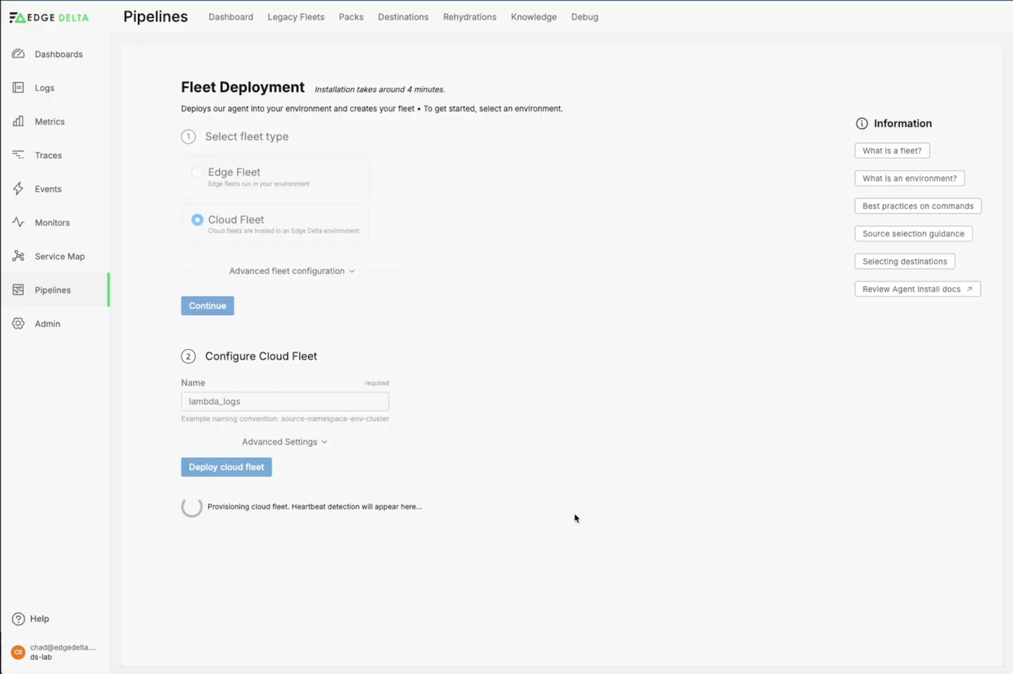 Step 1: Create an Edge Delta Cloud Fleet