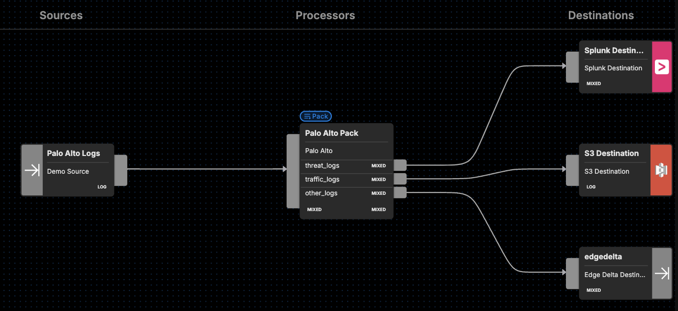 Ready to see it in action? Visit our pipeline sandbox to try it out for free! Already an Edge Delta Customer? Check out our packs list and add the Palo Alto Pipeline Pack to any running pipeline.