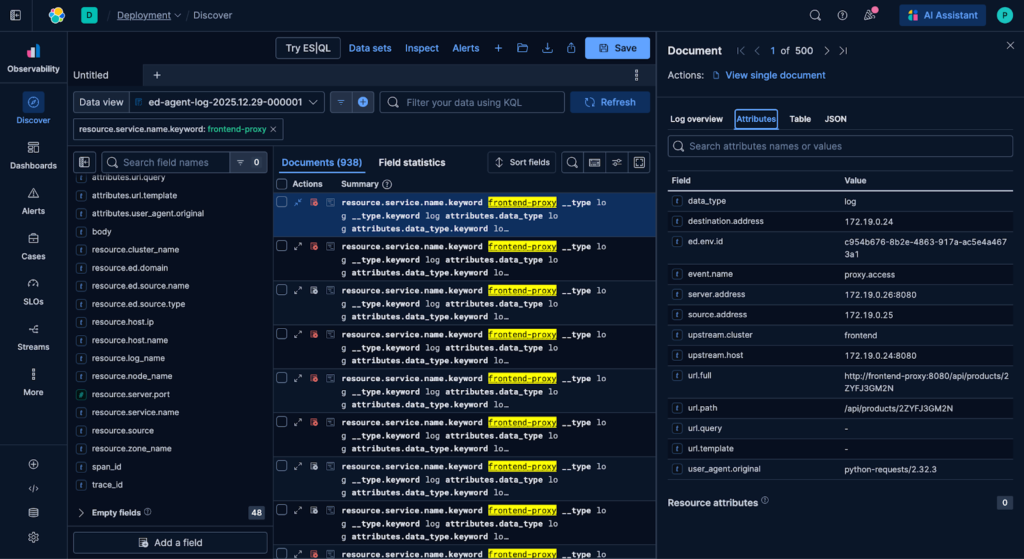 In many environments, datasets are intentionally split across systems to optimize costs and simplify operational workflows. In the example scenario below, we are shipping metrics, traces, and logs generated by the OpenTelemetry Demo into Edge Delta, with the exception of logs from the “frontend-proxy service”, which are routed into Elastic: