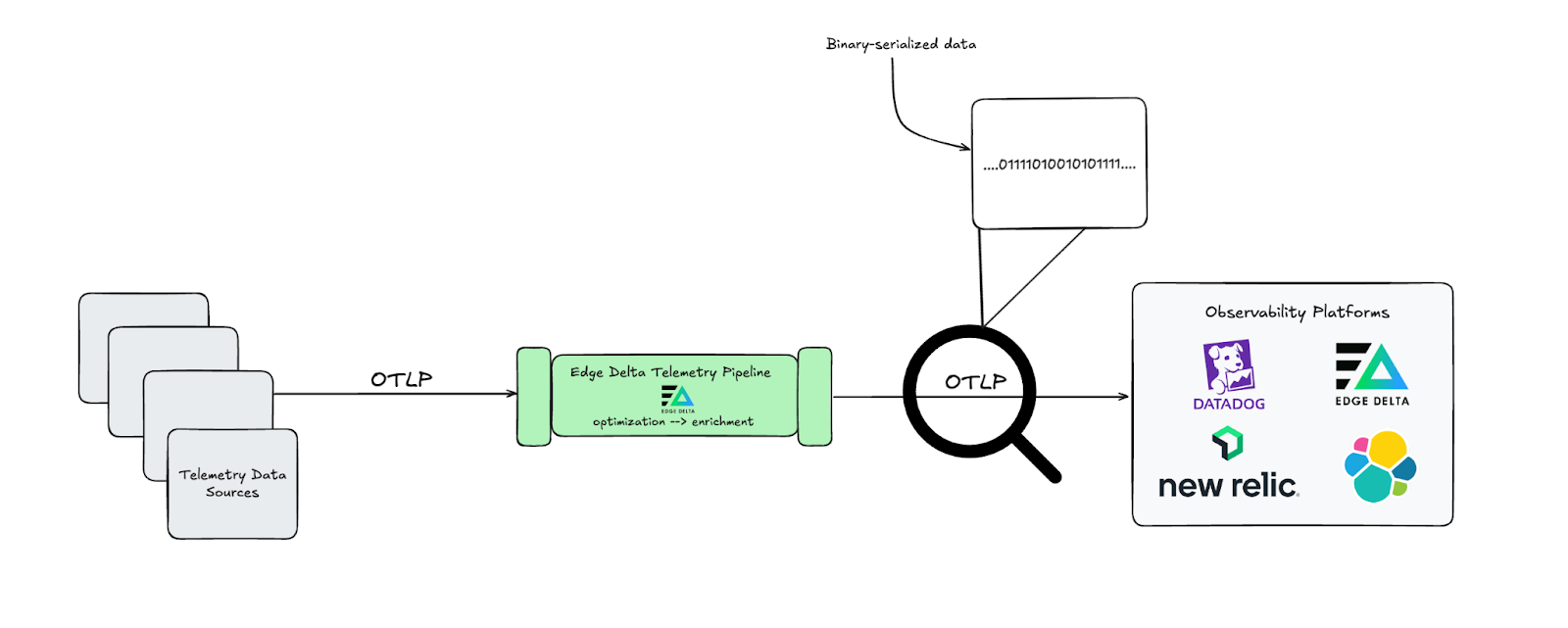 As OTLP adoption grows, many observability vendors have added OTLP-compliant ingestion endpoints to support standardized telemetry workflows. Edge Delta’s Telemetry Pipelines are designed with this flexibility in mind, allowing users to route OTLP data to any destination that supports the protocol.