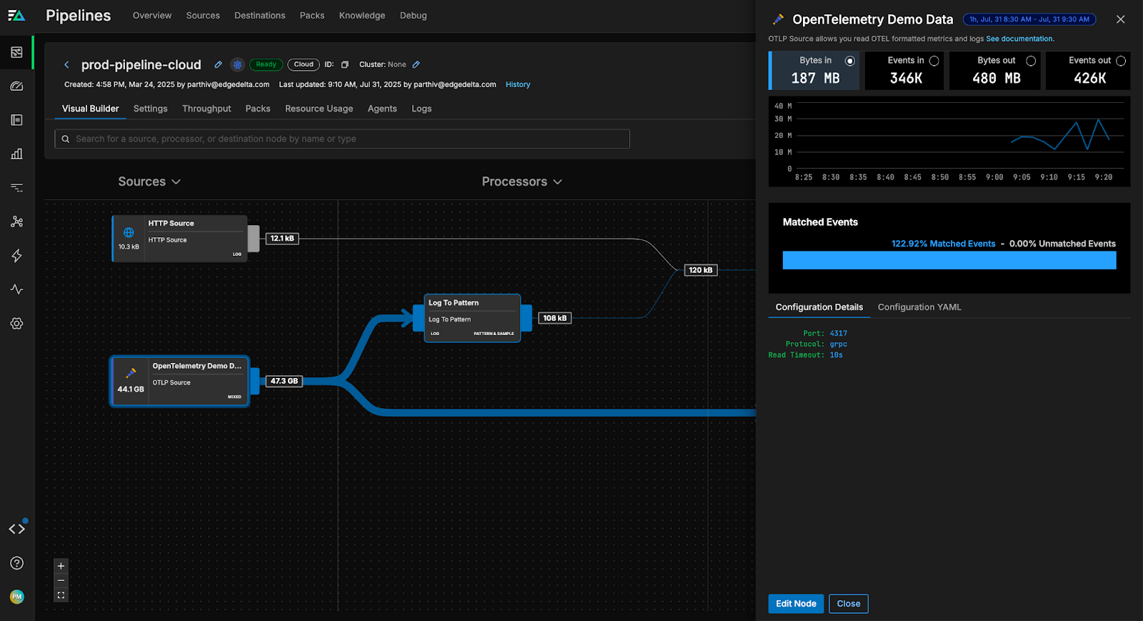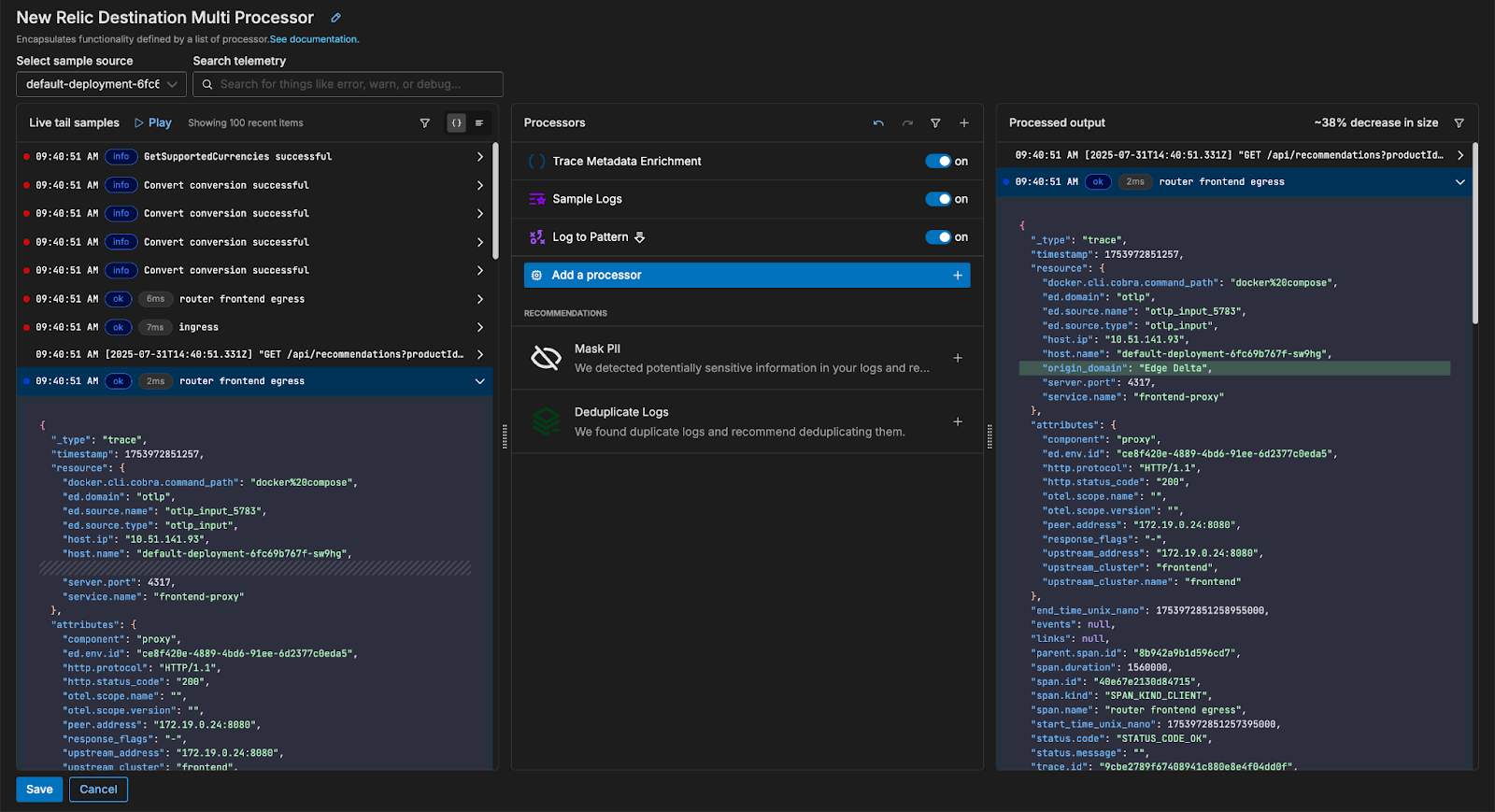 In addition to flexible data routing, Edge Delta also allows us to pre-process our OTLP data before it’s indexed downstream.