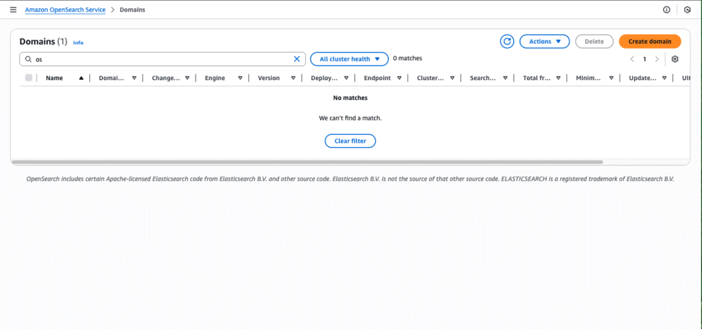 Let’s navigate back to the OpenSearch homepage, where we’ll see our newly created domain: