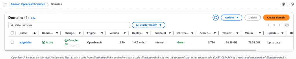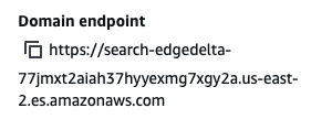 We’ll need to supply our Edge Delta pipeline with the domain’s endpoint — to do this, we can click on the domain directly, and save it: