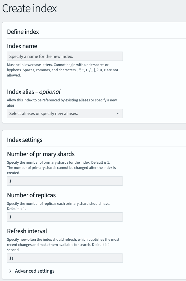 - Number of primary shards: “1”