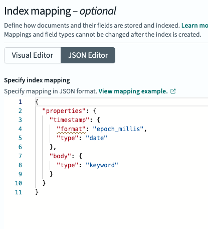 We’ll also set the index mapping for the timestamp field, as shown below: