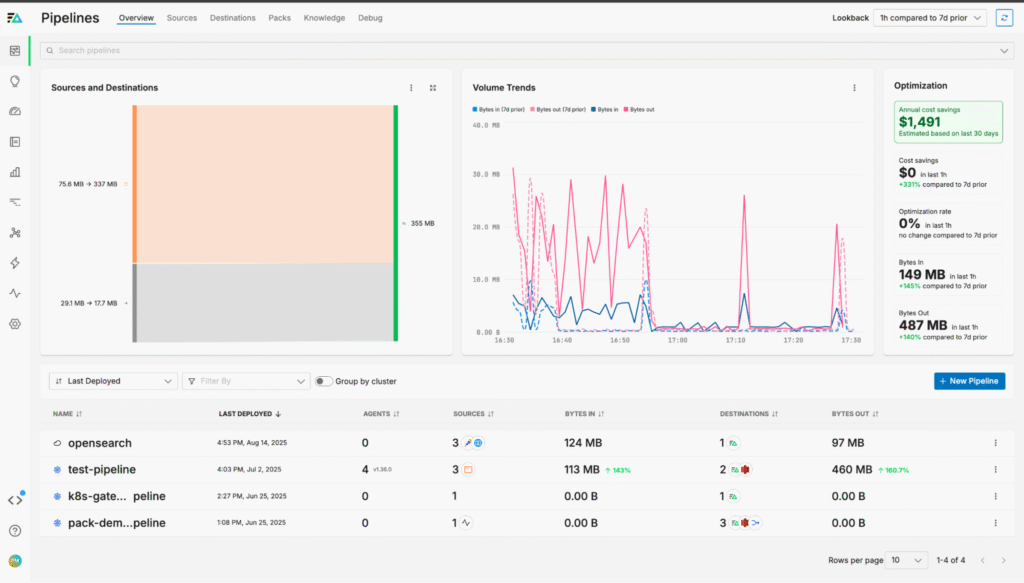 By adopting Edge Delta’s Telemetry Pipelines, OpenSearch users gain end-to-end control over their telemetry data. They can feed clean, structured, and optimized data into their OpenSearch indexes, dramatically reducing log volume, eliminating inconsistent formats, and improving monitoring and analysis.