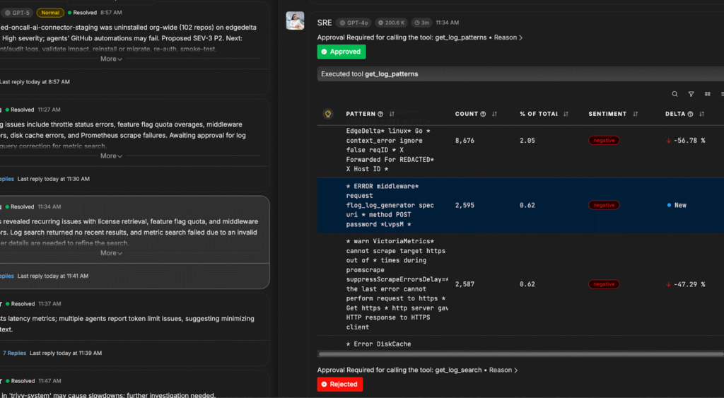 Another key aspect is scale. We know enterprise data can be massive and high-velocity. The only reason we can offer real-time multi-agent AI on streaming data is because of the years we’ve spent optimizing these pipelines for throughput and reliability. Edge Delta’s architecture was built to handle millions of events per second across decentralized nodes, performing statistical analysis and anomaly detection in-stream. This same architecture now empowers the AI Teammates. It means as your data grows, your AI’s capacity to handle it grows too – without a linear increase in costs or latency. And since the heavy data crunching happens at the edge (close to the data source), the overall solution remains scalable and cost-efficient. You’re not shipping every raw log to an AI model (which would be unsustainably expensive); you’re leveraging our curated approach to send only what’s necessary for inference, as discussed earlier.