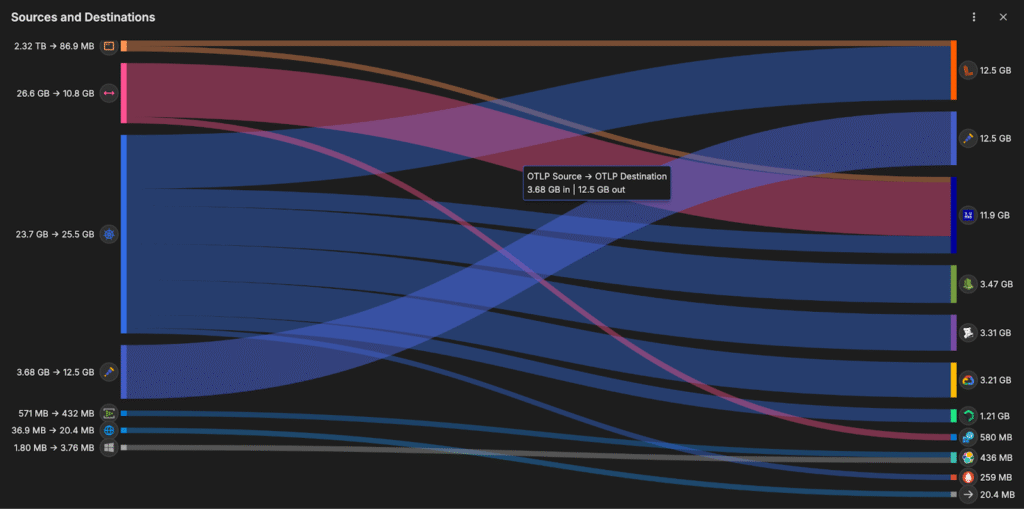 - Optimized Observability: Our pipelines pre-process and route telemetry data to premium monitoring tools like Splunk, Datadog, Dynatrace, Elastic, Grafana, and others, ensuring you see anomalies and trends without overwhelming those systems. This means you get better insights with a fraction of the data volume, noise, and cost.