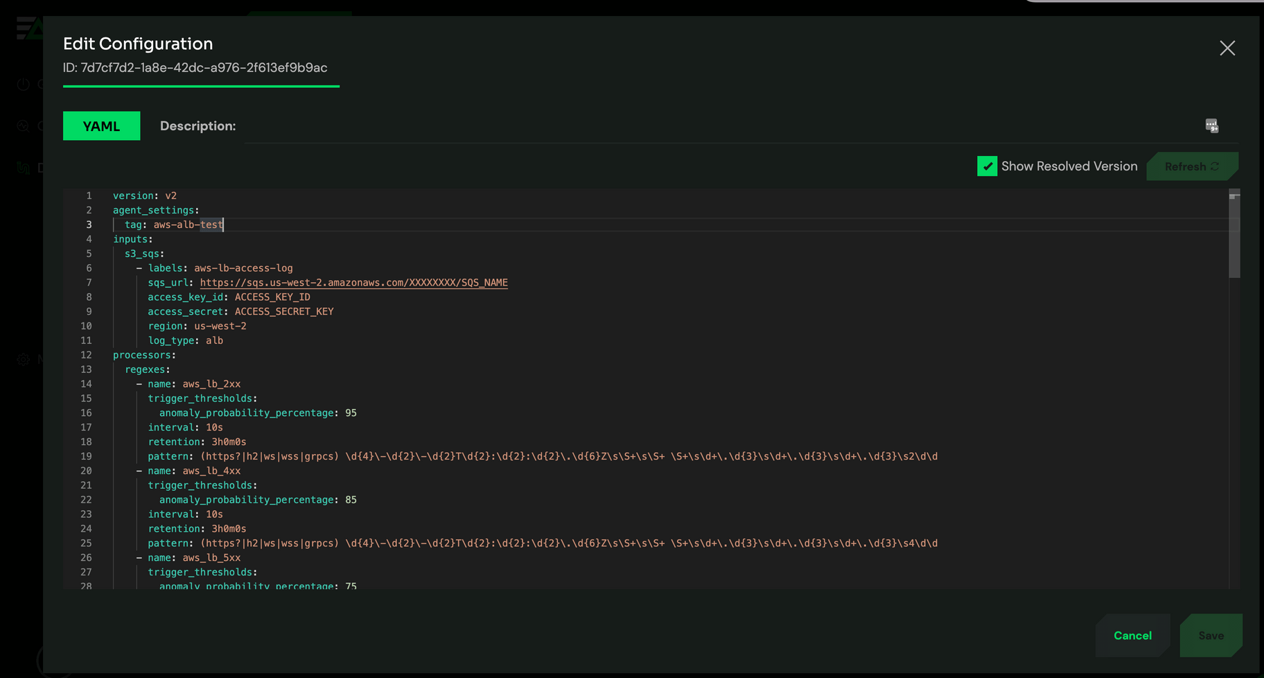 While you are adding the configpack into your agent config you can see the resolved version of the agent configuration by clicking the “Show Resolved Version” checkbox.