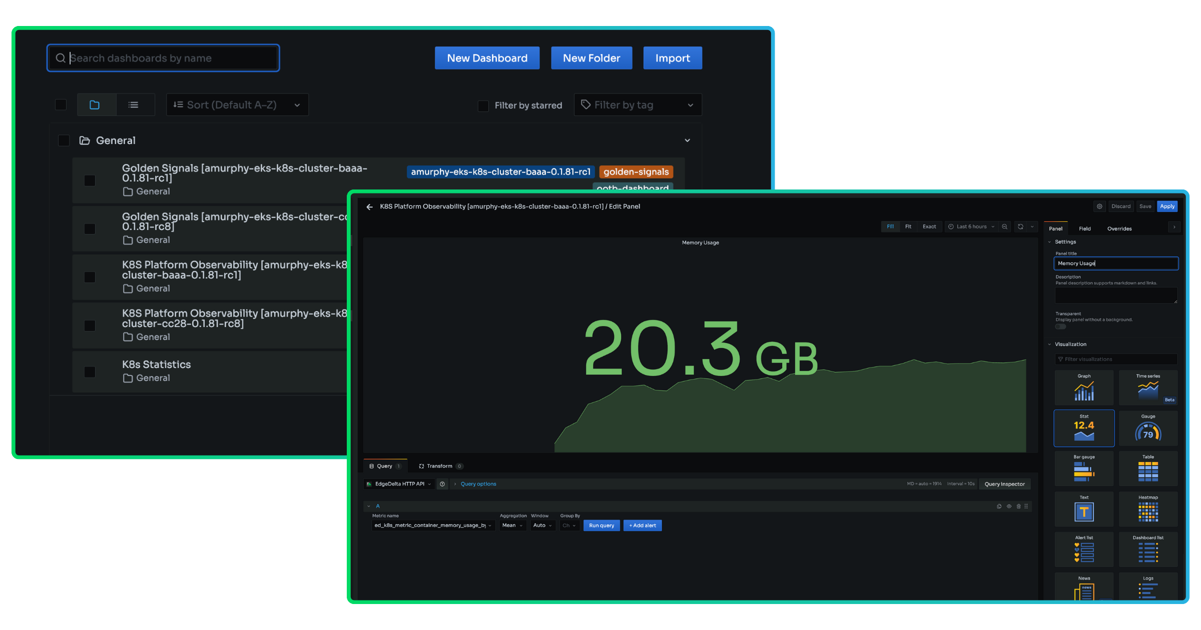 We recognize there are scenarios where you may have more specialized needs. With direct access to all of the metrics we ingest – golden signals, Kubernetes, Edge Delta infrastructure, and data volume metrics – we also give you the flexibility to build custom and unique views via embedded dashboards and create alerts for the metrics that matter to you.