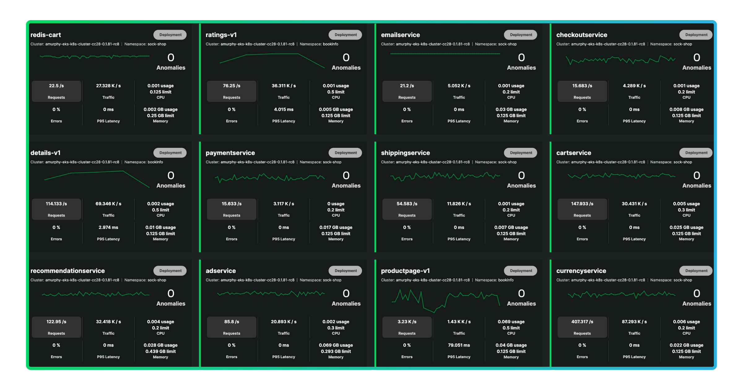 We provide additional out-of-the-box screens in our Dashboards view for all of the golden signals along with the kubelet, cAdvisor, and node-exporter libraries.