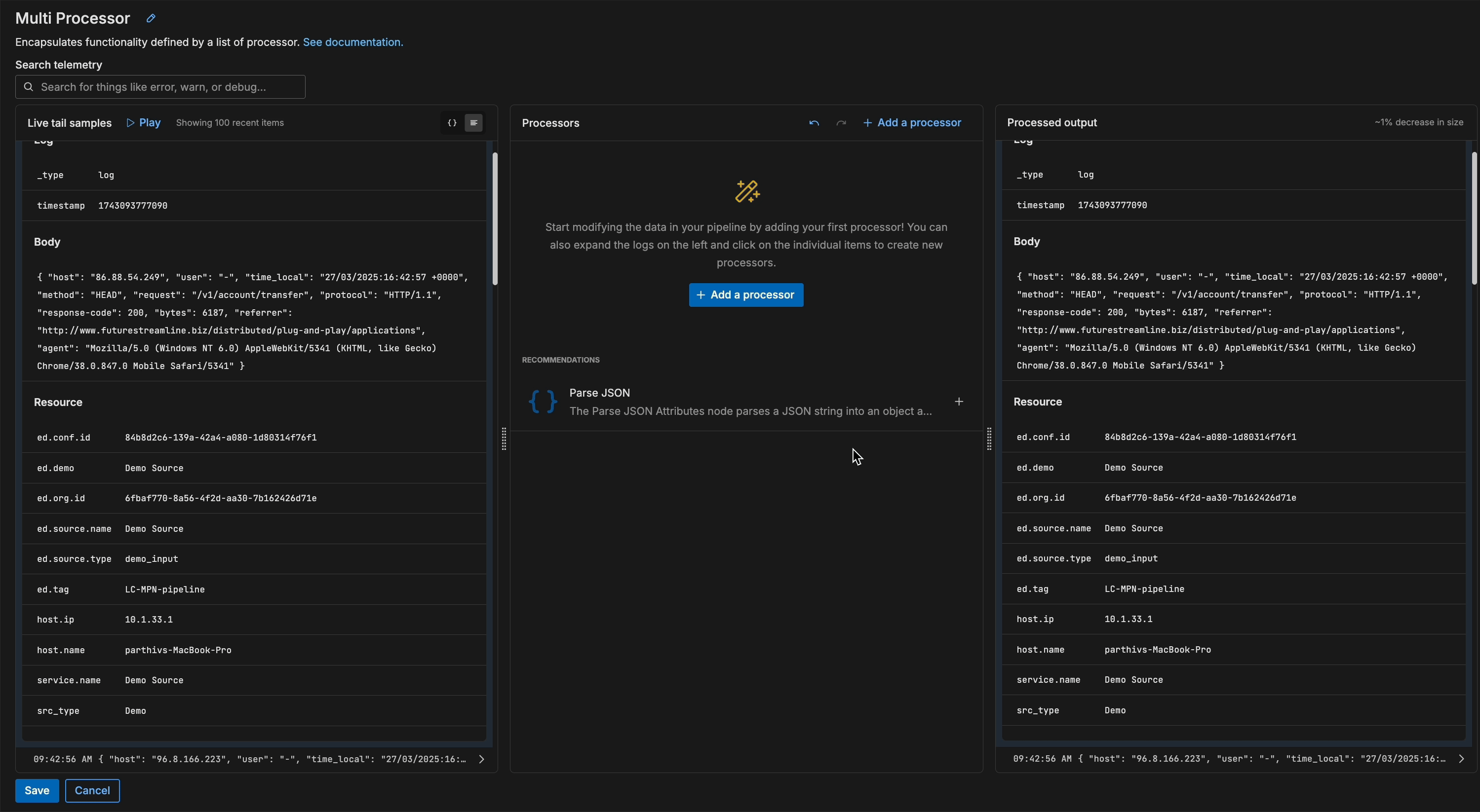 Having an in-depth understanding of how new processing rules affect your telemetry data during configuration is a critical part of the pipeline construction process. Without it, teams struggle with troubleshooting processing steps before pushing changes into production, which can lead to inaccurate transformations, unexpected data loss, and ultimately reduced downstream monitoring and analysis quality.