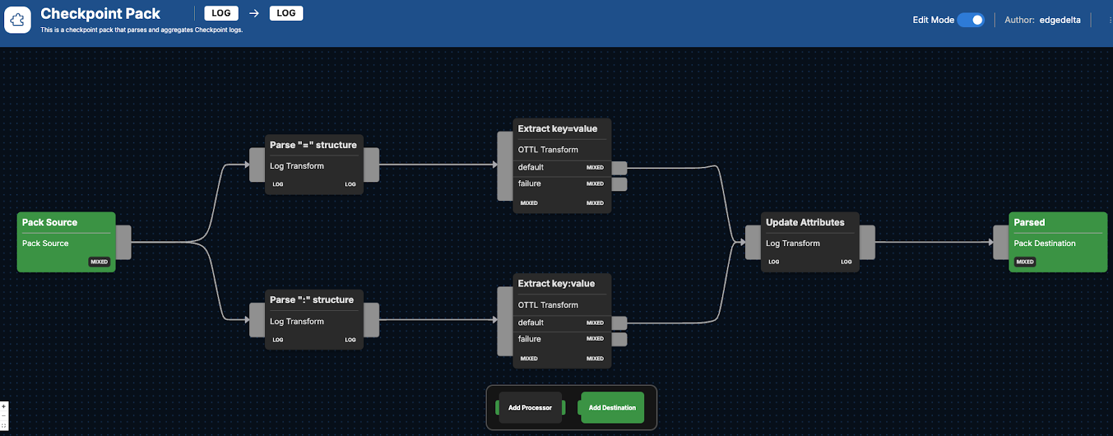 Ready to see it in action? Visit our pipeline sandbox to try it out for free! Already an Edge Delta Customer? Check out our packs list and add the Check Point Pack to any running pipeline.