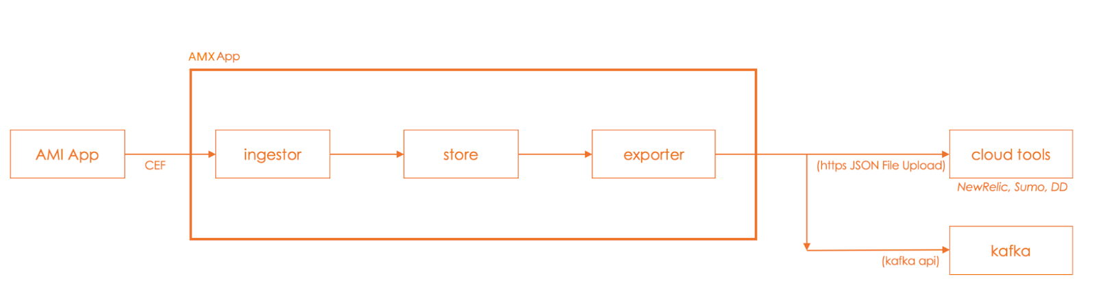 Data flow diagram from AMI to AMX exporter to downstream destinations.