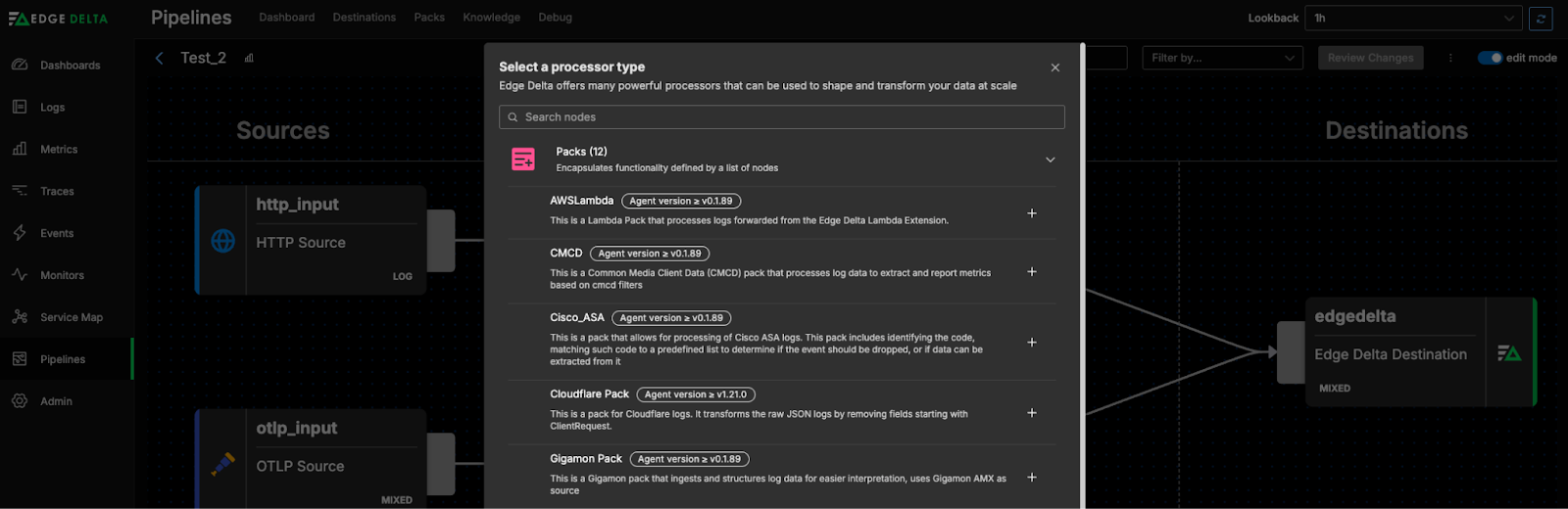 To start using the CMCD Pack, you’ll first need an existing pipeline in Edge Delta.