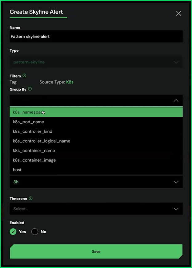 Applying Pattern Skylines at the source-level provides two primary benefits. First, you are baselining sources against themselves, meaning the most relevant dataset. As a result, you can quickly detect meaningful changes in behavior. Second, isolating datasets at the source level makes it easy to determine exactly what object an issue is occurring within – you can see the exact namespace or container. And you can get these insights without manually building logic to account for each individual object.