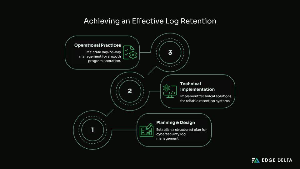 Building an effective log retention policy requires mapping your compliance requirements, business needs, and technical constraints into clear, actionable guidelines. Let’s look into the entire process: