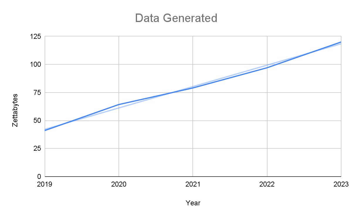 From 2019 to 2023, data creation and consumption had a surged growth of 192.68%. The demand for data started increasing rapidly when 57% of businesses increased their decision-making effectiveness.