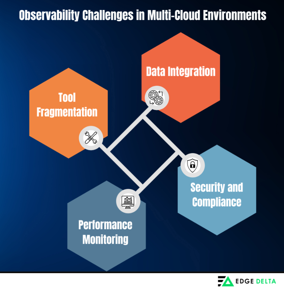 In a multi-cloud environment, different cloud platforms often have unique monitoring and logging tools, which can result in data silos. These silos make it difficult to obtain a unified view of the entire infrastructure, leading to inconsistent analysis, blind spots in monitoring, and potential delays in identifying and resolving issues.