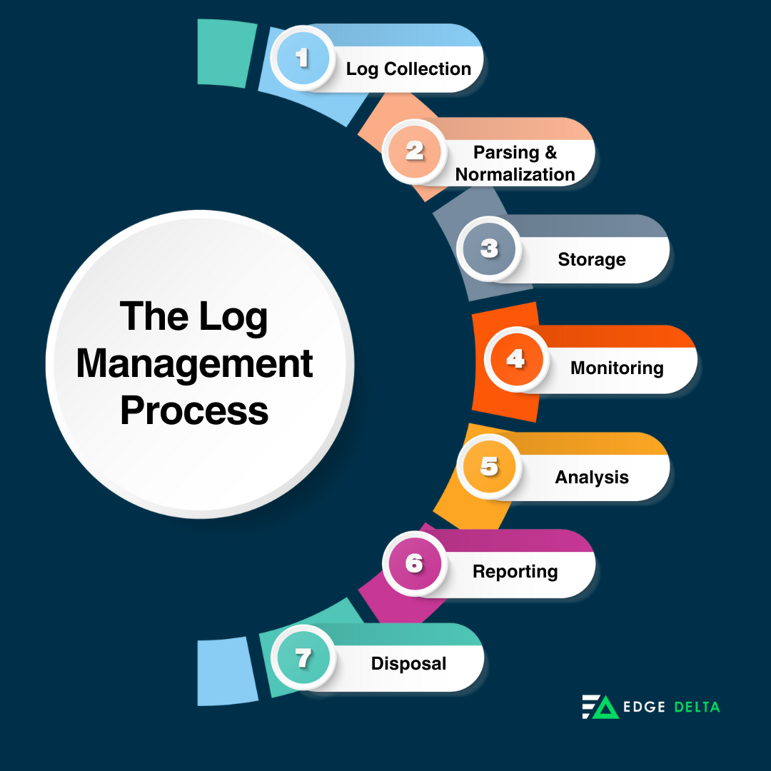 The log management process continuously gathers, stores, processes, synthesizes, and analyzes data. Typically, the logging process includes the following: