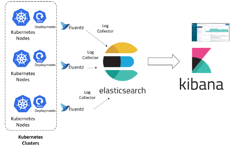 A distributed search and analytics engine called Elasticsearch is excellent at saving and organizing large amounts of data. Fluentd is a data collector that gets data from different places and sends it to Elasticsearch to be indexed. Kibana, a data visualization tool, lets people work with data saved in Elasticsearch by making their dashboards and visualizations.