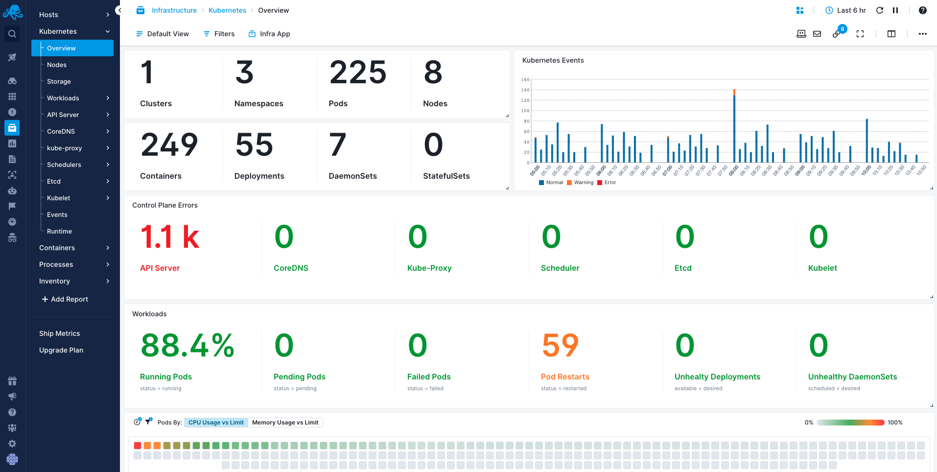 A key metric you’ll want to monitor for pods is CPU usage because, as we saw above, CPU limits can restrict how much CPU resources are available for each pod.