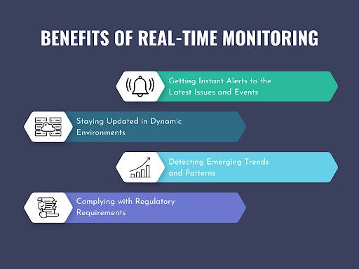 The continuous nature of real-time monitoring allows for quick detection of emerging patterns and trends. Such an advantage offers benefits to organizations like: